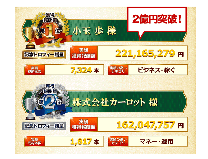 日本一多くの実績者を生み出している