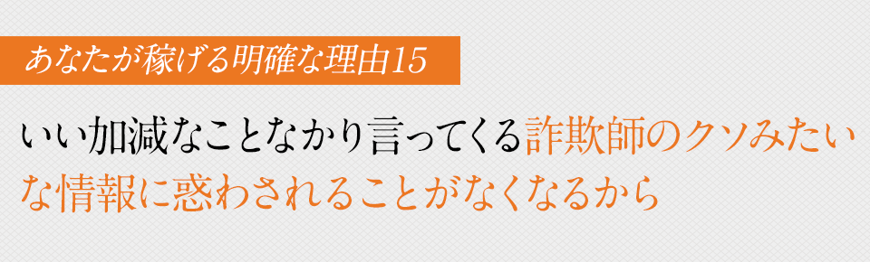 こういったキャッチコピーは、全て詐欺です。
