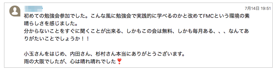 FMCの仲間のリアルな声を聞いてみてください。